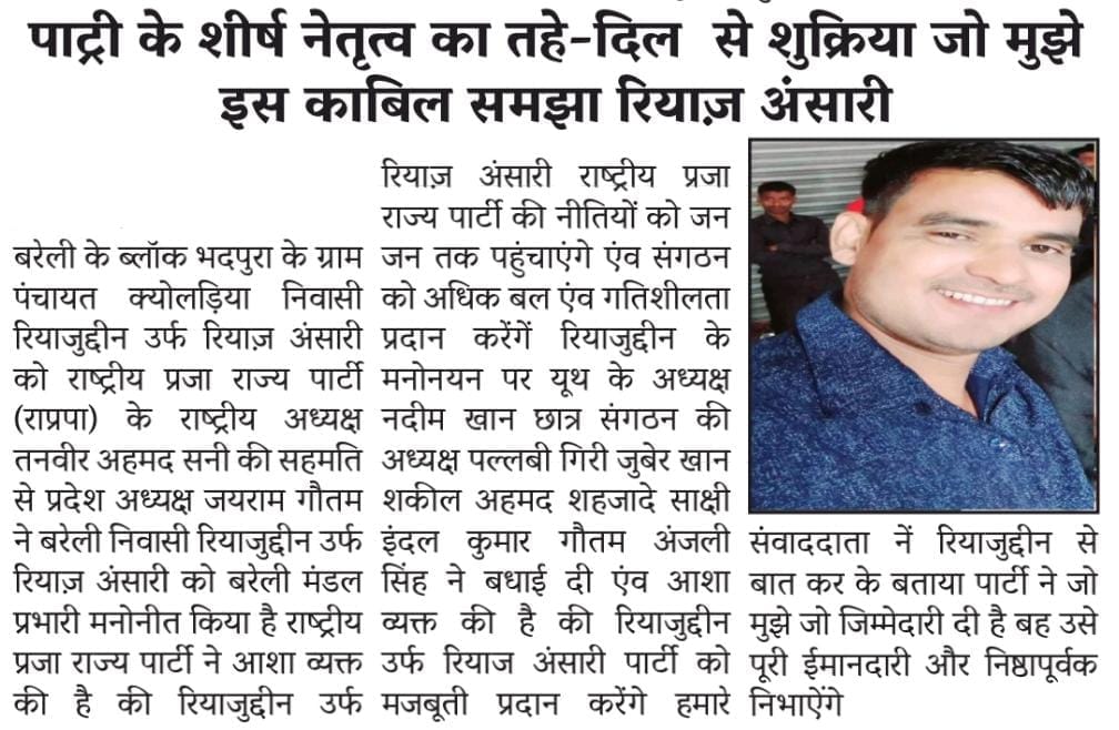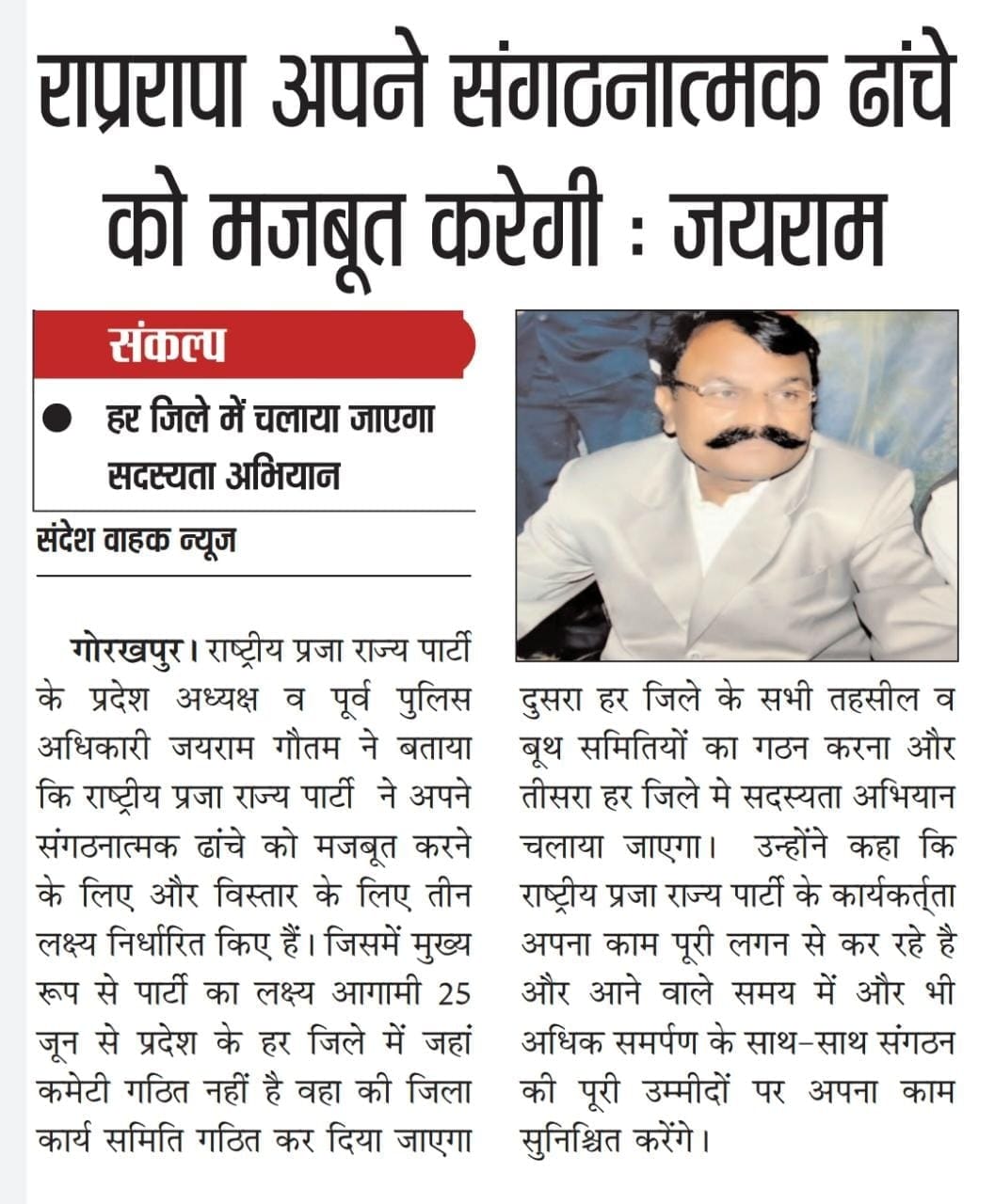 हम समाज के सामाजिक और आर्थिक रूप से कमजोर वर्ग की आवाज के रूप में अनवरत काम कर रहे हैं और लगातार काम करते रहेंगे। महान समाजवादी दूरदर्शिता के पदचिन्हों पर चलते हुए, राष्ट्रीय लोक प्रजा राज्य पार्टी का यह दृढ़ विश्वास है कि ‘संप्रभु, समाजवादी, लोकतांत्रिक और धर्मनिरपेक्ष गणराज्य’ के संवैधानिक आदर्शों को हकीकत में बदलने के लिए जमीनी स्तर पर स्थायी सतर्कता और संघर्ष की आवश्यकता है।